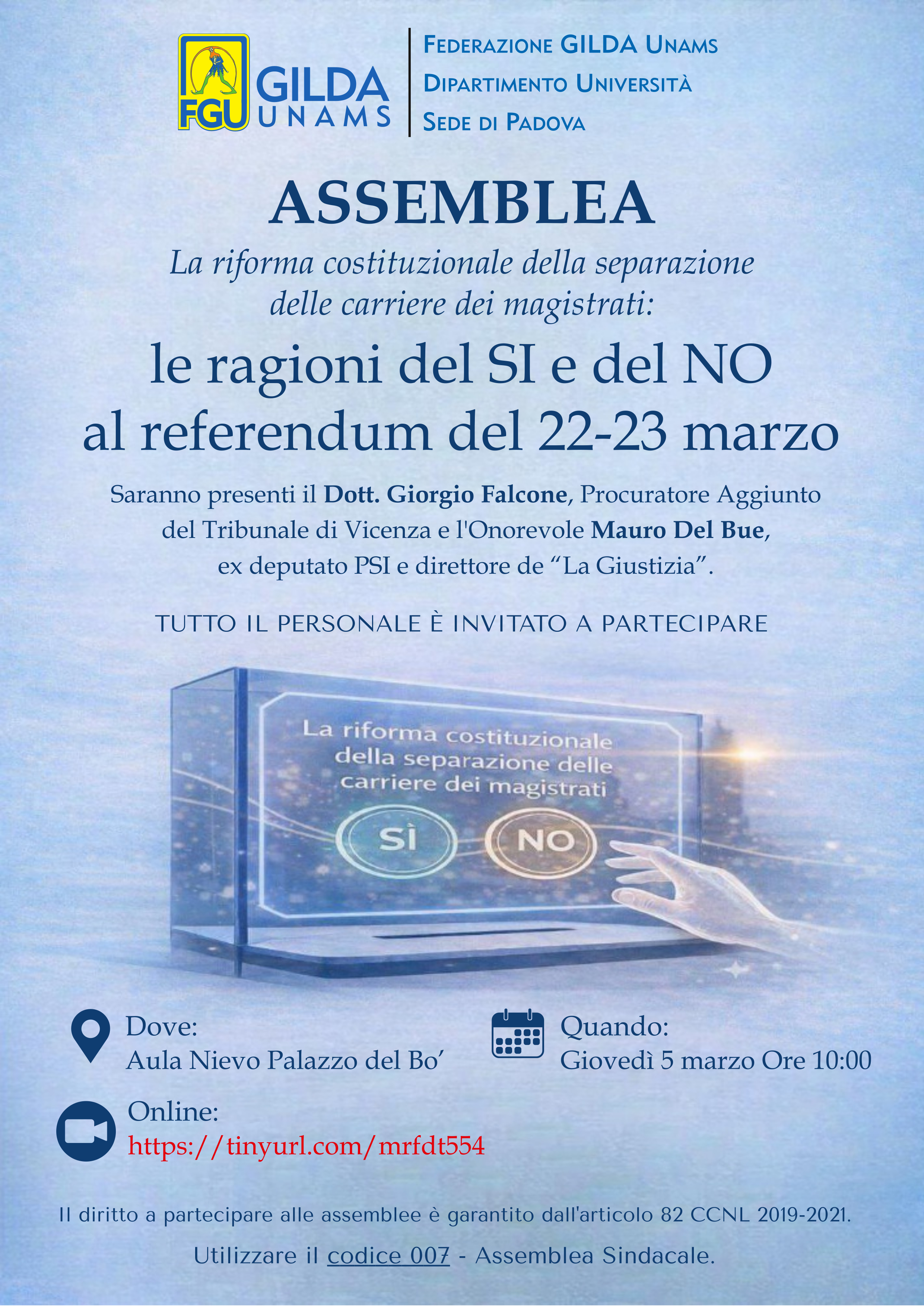mercoledì 21 gennaio presso l’aula De Ponti Palazzo del Bò, dalle ore 12.30
